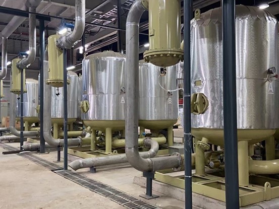 The purpose of the dryer required by Beterui Company is mainly to dry and efficiently purify the compressed air in the lithium battery production process without damaging the gas equipment. In order to ensure that it can produce high-quality products that meet standards, the company’s gas requirements are very high. The total gas consumption exceeds 800 cubic meters/min, and the dew point requirement is even lower than -40°C. In response to the national energy-saving policy, the effect must meet national standards, requiring easy operation and maintenance of the machine, beautiful appearance of the dryer, and pressure dew point requirements ≤ -40℃, oil content 0.01ppm, dust particle size ≤1um, air consumption ≤ 3%.